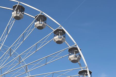 Detail of a ferris wheel in an amusement park with the sky in the background