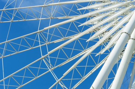 Ferris wheel amusement park metallic construction frame attraction panoramic format of vivid and blue colors picture