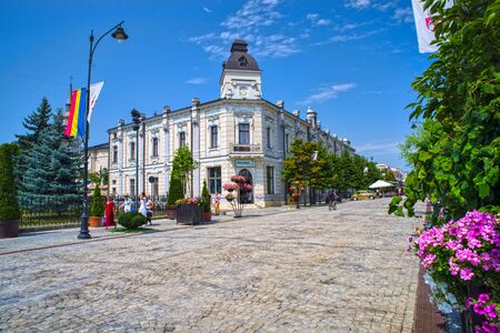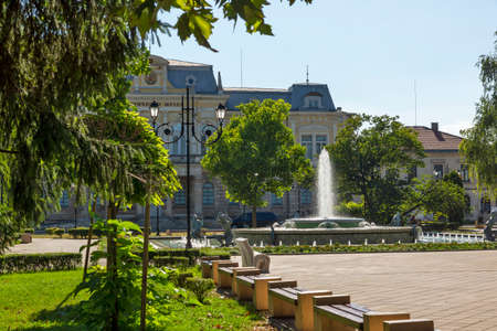 RUSE, BULGARIA -AUGUST 15, 2021: Kniaz Alexander Battenberg Square at the center of city of Ruse, Bulgaria