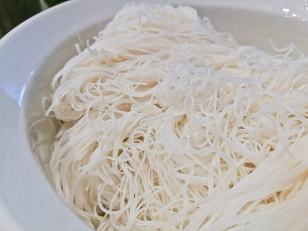 Plain white vermicelli rice small noodle boiled in a bowl