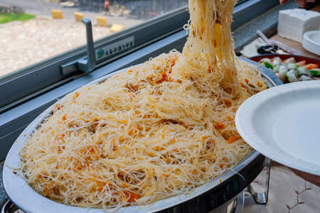 Close up shot of a box of fried rice noodles at Taipei, Taiwan