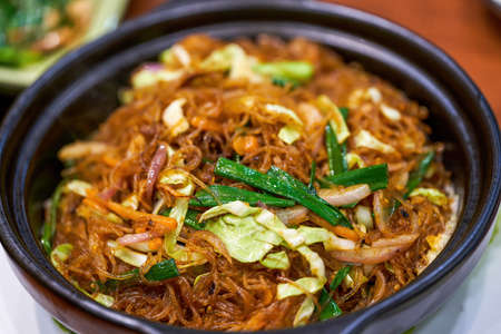 A delicious Chinese dish, vegetarian stir-fried vermicelli in clay pot