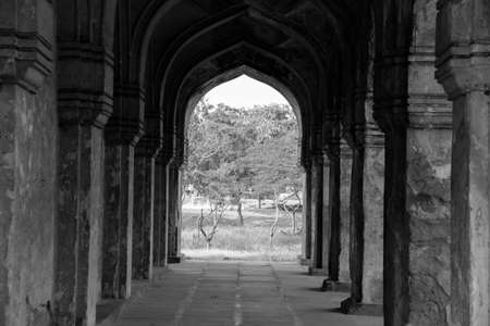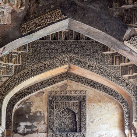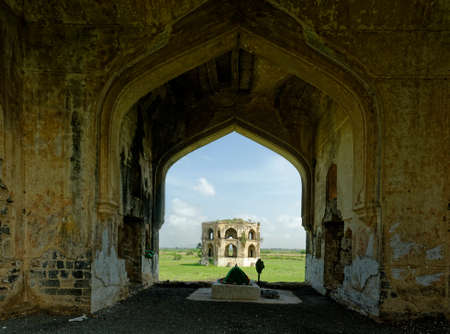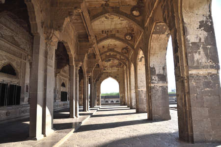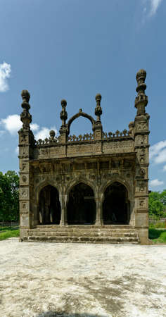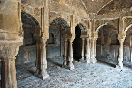 Mandu India, afghan ruins of islam kingdom, mosque monument and muslim tomb. Architectural details.