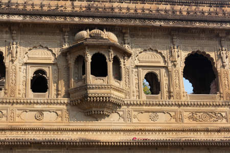 Shiva Lingam temple at Maheshwar, India. Architectural details of stone carvings.