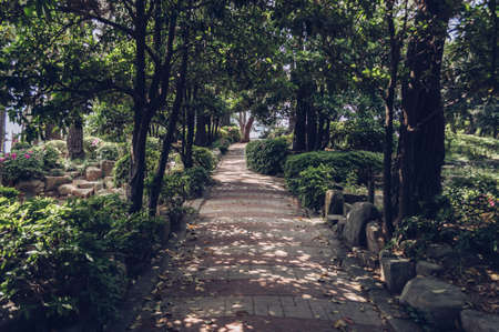 paved road inside of public korean park in Busan in daylight