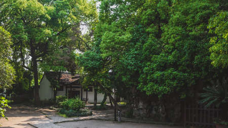 Path between trees in garden in the old town of Nanxun, Zhejiang, China