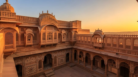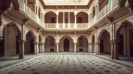 Lonely Rajasthani Palace: A grand palace in Rajasthan, with empty courtyards and halls, exuding a sense of regal solitude
