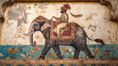 Indian miniature painting of a Mughal emperor on an adorned elephant, capturing the royal grandeur of Udaipur's historical art