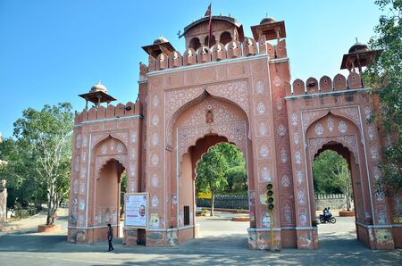 Jaipur, Rajasthan / India - September 29, 2019: Colorful Patrika Gate, one of the most famous tourist places in Jaipur, Rajasthan, India