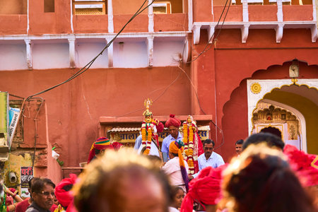 Sikar,Rajasthan ; 03-24-2023 : people celebrating the Gangaur festival