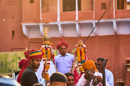 Bikaner, India - Dec 29, 2019: Indian Rajasthani people in national clothes in the streets of Bikaner, Rajasthan