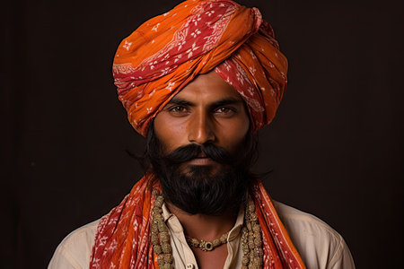 Indian Rajasthani turban also called Paghdi or Safa in India worn by Rajputi men in Jaipur