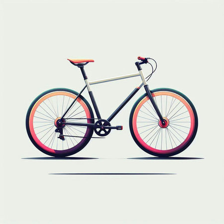 This vibrant image showcases a sleek orange bicycle and cycling gear meticulously arranged on a bold backdrop. Ideal for promoting active lifestyles and outdoor adventures.