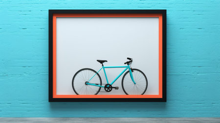 a blue bike, framed in a 3d style, stands against a matte background. the light black and orange hues create a misty atmosphere, enhancing the photo-realistic techniques used. the minimalistic objects and matte finish add to the overall aesthetic of this captivating image. ai generated