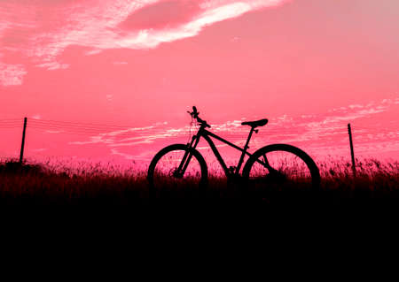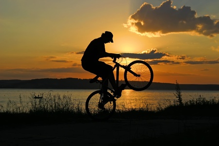 Silhouette Mountain biking, down hill at sunset