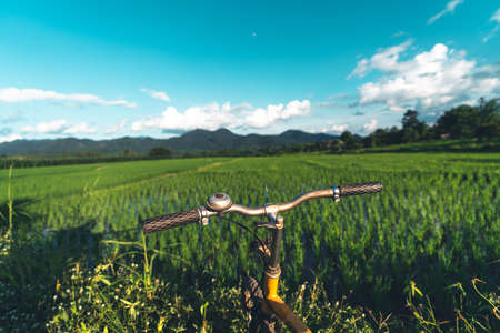 Close up image of blue vintage city bicycle. It is like concept for activity and healthy lifestyle and environmentally friendly transport