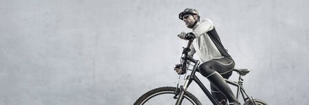 Man with a mountain bike panorama