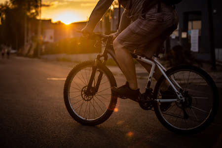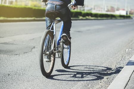 young man on a bicycle on asphalt road