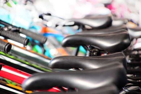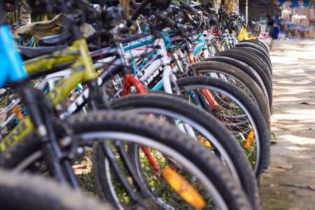 assortment of new clean bicycles to rent bicycles for exploring the city. start of the bike season. eco-friendly and useful city driving