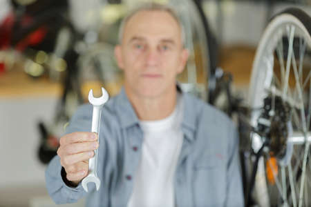 handsome senior mechanic presenting a spanner
