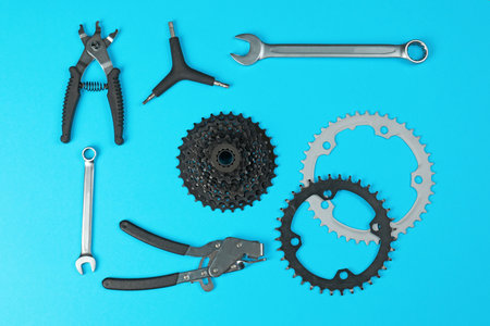 Accessories for spare parts for mountain bikes. view from above.