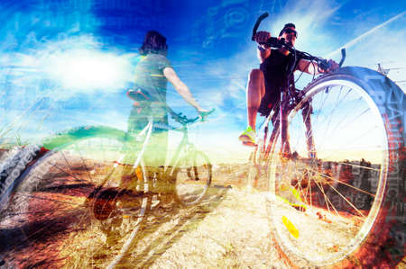 Bicycle and extreme sport concept background.Lifestyle and adventure with bike double exposure.