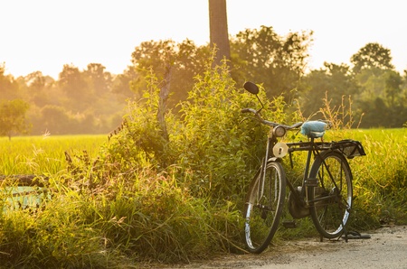 bicycle at sunny day and grass field