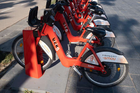 Barcelona, Spain - 5 November 2021: Bicing is a Bicycle-sharing system in the city of Barcelona, Spain, Illustrative Editorial.