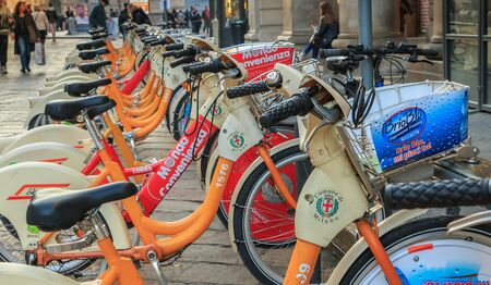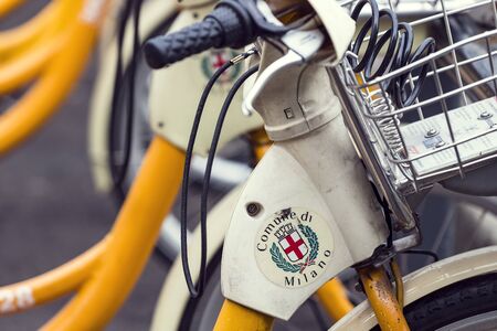 4 JUNE 2018, MILAN, ITALY: Rental of bicycles in Italy