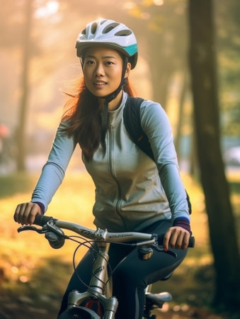 Young Asian cyclist woman exercise by riding a bicycle. Cycling is amazing for those looking for a form of cardio or aerobic exercise other than running.