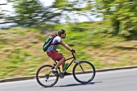 Cyclist Riding a Bike on the Road in Motion Blur Background