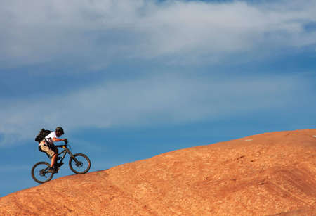 A lone mountainbiker rides a steep section of Moad's famous slickrock mountain bike trail.