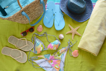 accessories to go to the beach as slippers, bag and swimsuit