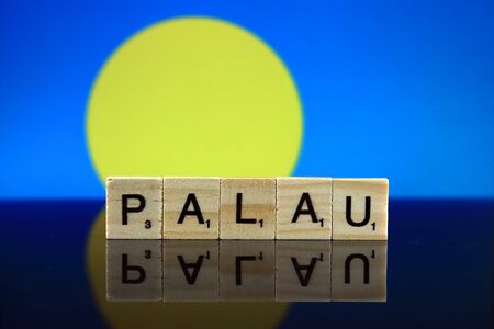 Palau Flag and country name made of small wooden letters. Studio shot.