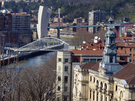 Bilbao, Spain, February 15, 2022. View of the city of Bilbao and the Nervion river in Spain