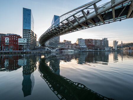 BILBAO-DECEMBER 2021 Zubizuri Bridge, Santiago Calatrava in Bilbao, Spain. High quality photo