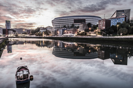 BILBAO, SPAIN - October 19, 2014: The Nervion River and elestadio of san Mames Bilbao, Vizcaya, Basque Country, Spain