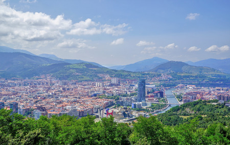Bilbao skyline, view from above. Beautiful city between mountains on the Spain north