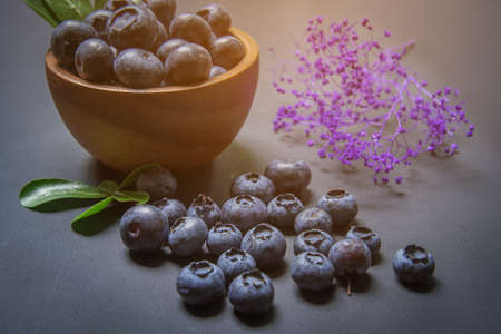 Blueberry fruit on stone background. Healthy forest fruit. Delicious fresh berries.