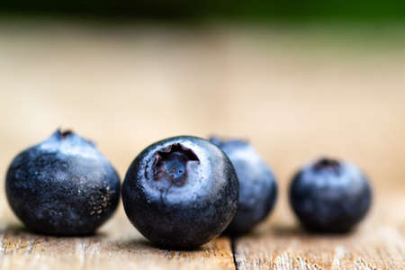 Blueberries on a wooden table. Fresh berries. Wild blueberries on a wooden stand. Copyspace.