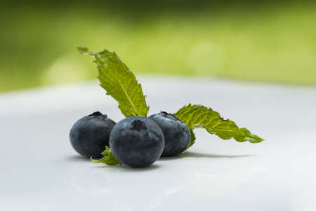 Some blueberries on a branch at the forest at summer sunny day close up shot, healthy food concept