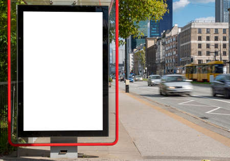 Blank white poster for advertisement on the bus stop in donwtown