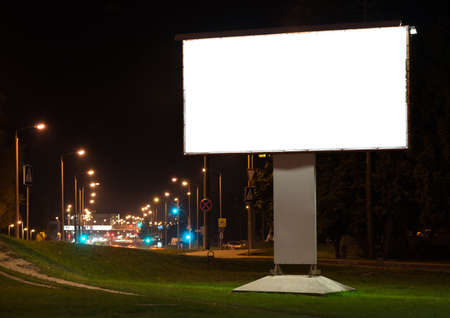 Blank billboard on the road at night time for advertisement concept.