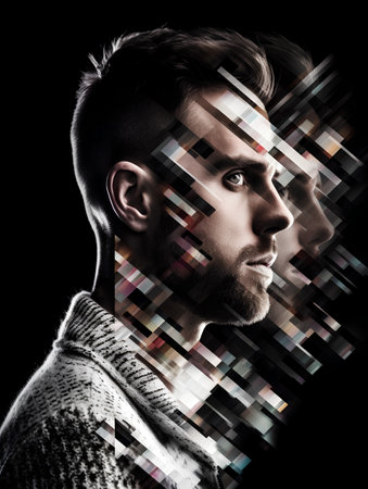 Conceptual portrait with man surrounded by his multiple personalities. Depressed person with multiple personality disorder