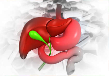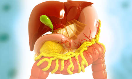 3D Illustration Human Digestive System Anatomy (Gall Bladder) For Medical Concept