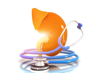 Human kidney with Stethoscope on a white background. kidney care and protection concept. 3d illustration