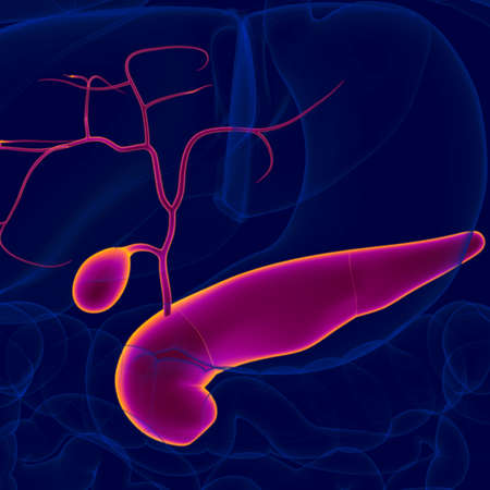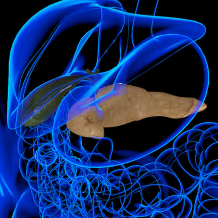 3D Illustration Concept of Human Internal Organs Pancreas with Gallbladder Anatomy