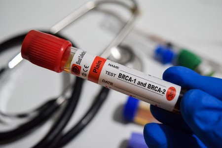 BRCA-1 and BRCA-2 - Test with blood sample. Top view isolated on office desk. Healthcare or Medical concept