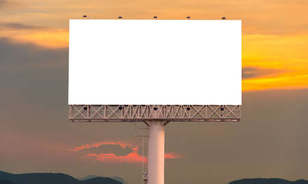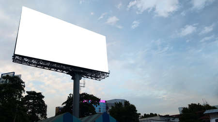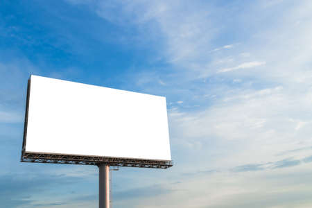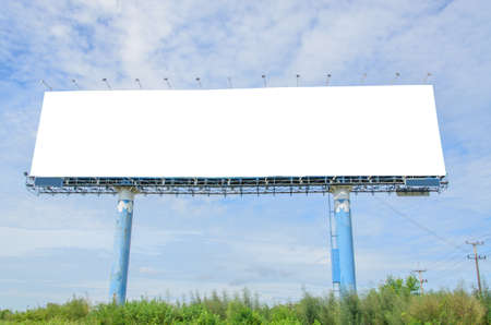 white blank billboard with clouds and blue sky background / for advertisement to display product and business promote.