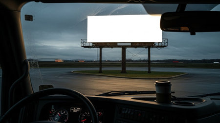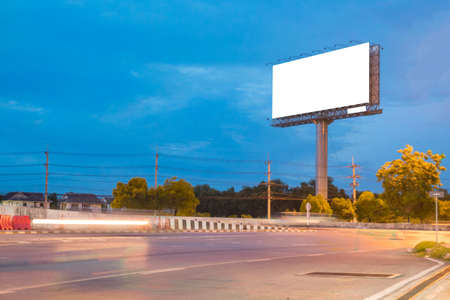Advertising billboard White screen on Highways of Thailand Eastbound with traffic in the evening.